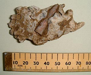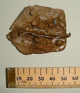 Below left: Riveted aluminium. Below right: The head of a .303 round embedded in a lump of lead.